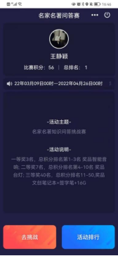 名家名著知识挑战学生端参赛界面图