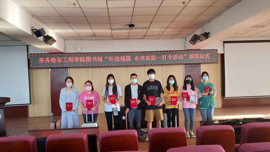 2022年6月9日17:00,在图书馆501会议厅举行图书馆读书节系列活动颁奖典礼,本次三个活动获奖人次共计35人,图书馆7位老师出席活动为获奖同学颁发证书及奖品。