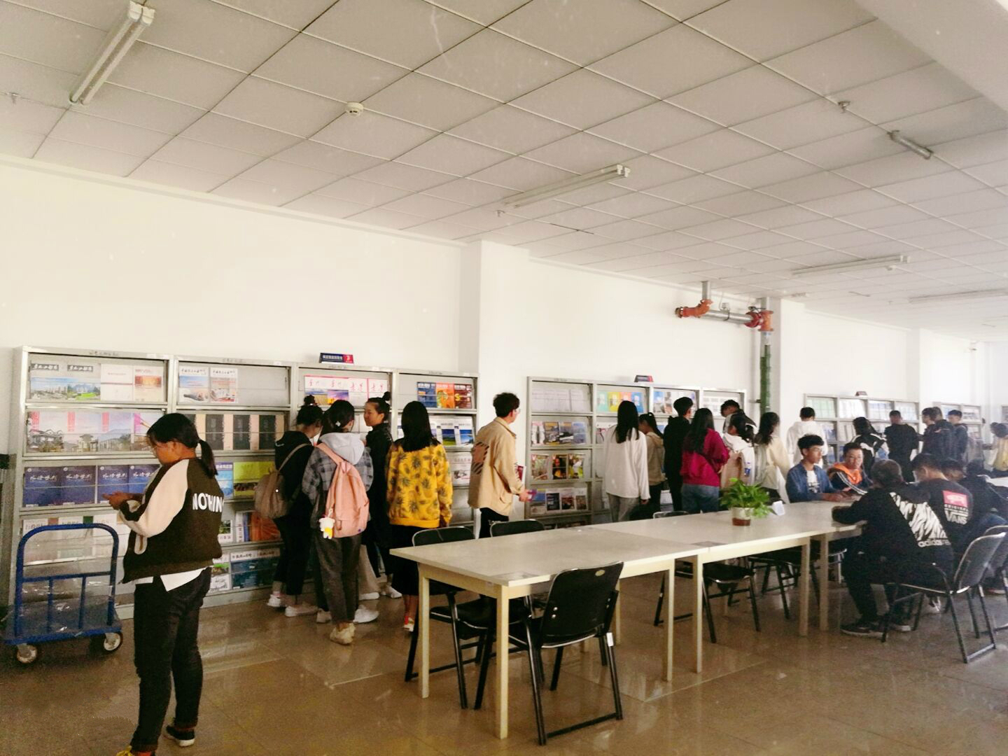 本周二、周三5-8节及周五1-2节和5-6节的后45分钟,图书馆的陈婷老师、孙卉老师及刘颖老师分别带领健康与护理系、信息工程系、建筑工程系、交通工程系、机电工程系及管理工程系六个系的新生参观图书馆。带队老师首先向新生们介绍图书馆的基本情况,让同学们对图书馆有了最基本的了解。讲解后,老师们带领新生到各个馆室进行参观,同学们在图书借阅室、电子阅览室、期刊阅览室及纸电一体阅览室驻足参观,认真聆听带队老师的讲解。特别是在新开馆的纸电一体阅览室中,新颖的阅读方式吸引了很多新生的目光。在老师的指导下,同学们尝试操作并使用电子阅读器进行阅读,提高了多数新生的阅读兴趣。