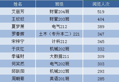 上榜班级均为20级毕业班级,可见读者在离校前充分认识到图书馆资源的宝贵,并且努力找到人生的方向,不遗余力的为之奋斗。